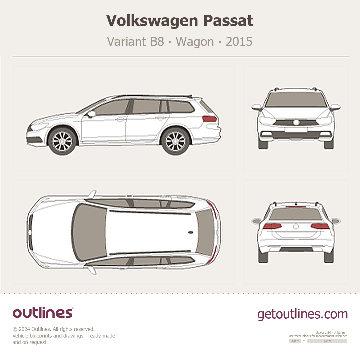 This is a blueprint of the Passat, produced by carmaker Volkswagen in 2015 - Present (2025, 2026). It features a Wagon body design and is classified as a Family vehicle.