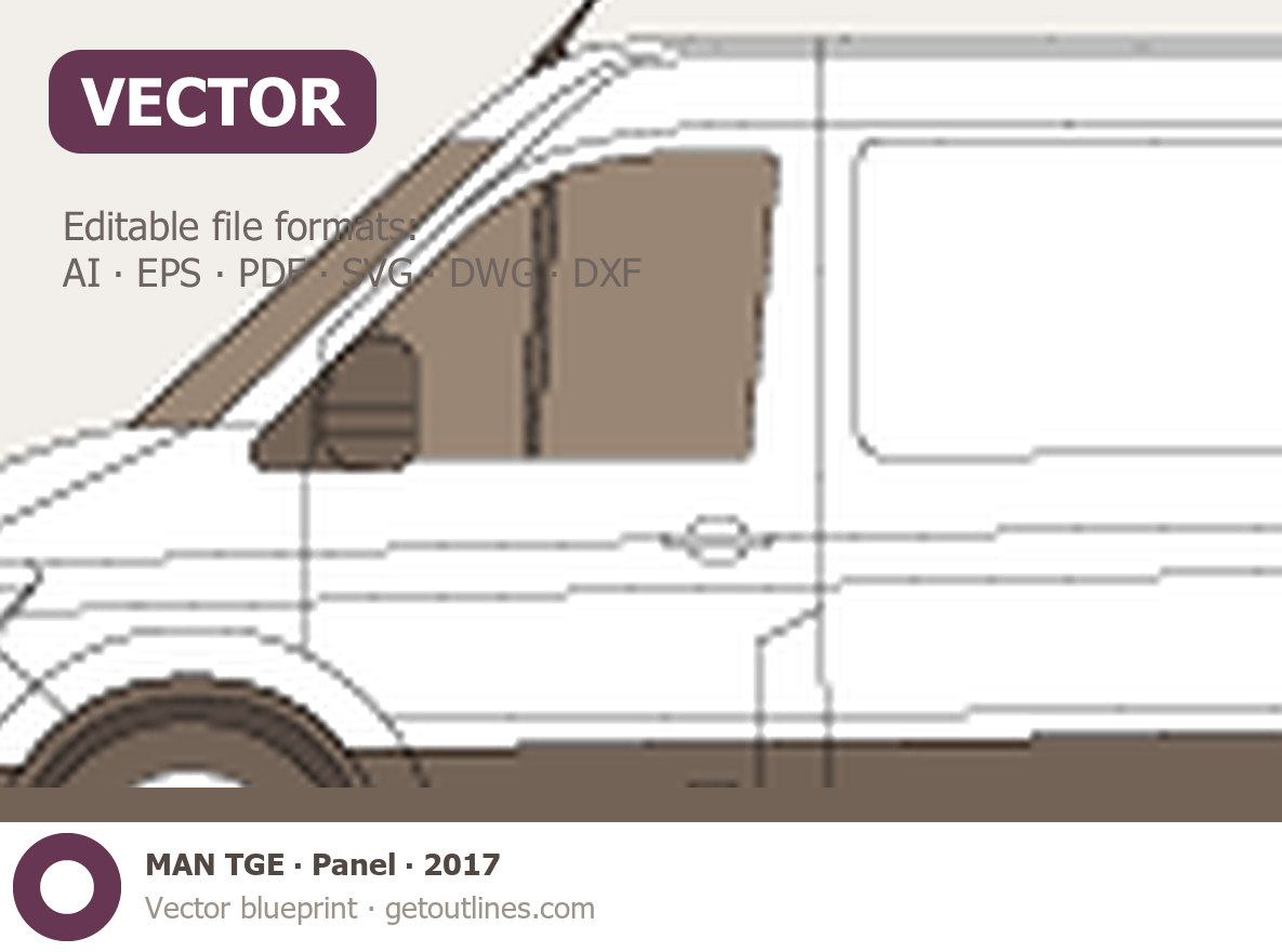 This is a blueprint of the TGE, produced by carmaker MAN in 2017 - Present (2025, 2026). It features a Van body design and is classified as a Commercial vehicle.
