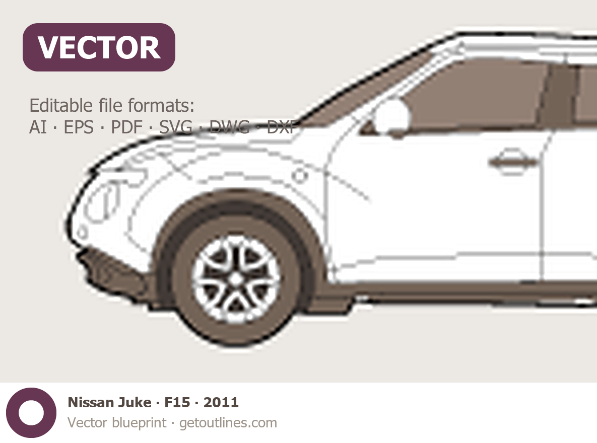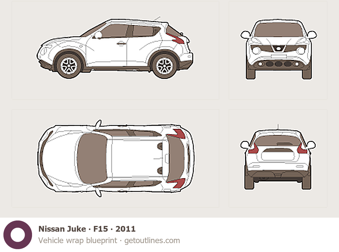 This 2011 Nissan Juke F15 SUV blueprint helps designers, wrap studios, and 3D artists simplify their workflow and save valuable time for creative work instead of routine tasks.
