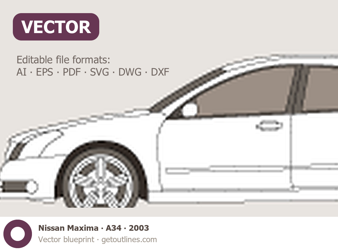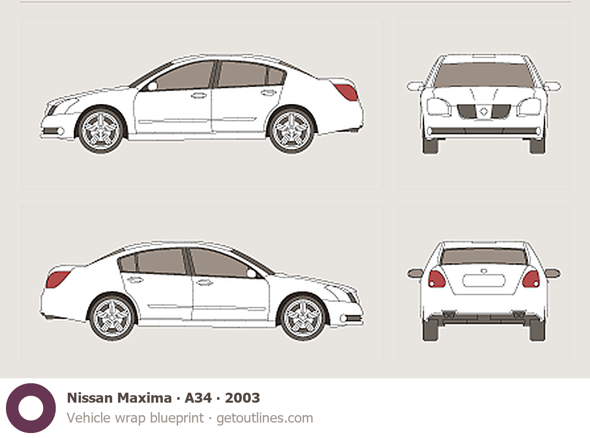 Buy this Nissan Maxima A34 blueprint and line drawing in high-quality editable vector file formats. Best for 3D and car wrap design.