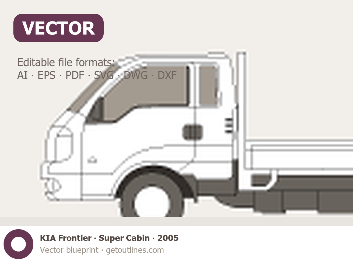 This 2005 KIA Frontier Super Cabin Pickup Truck blueprint helps designers, wrap studios, and 3D artists simplify their workflow and save valuable time for creative work instead of routine tasks.