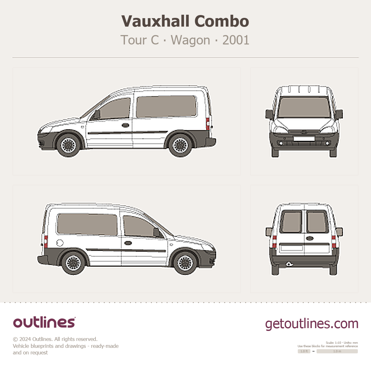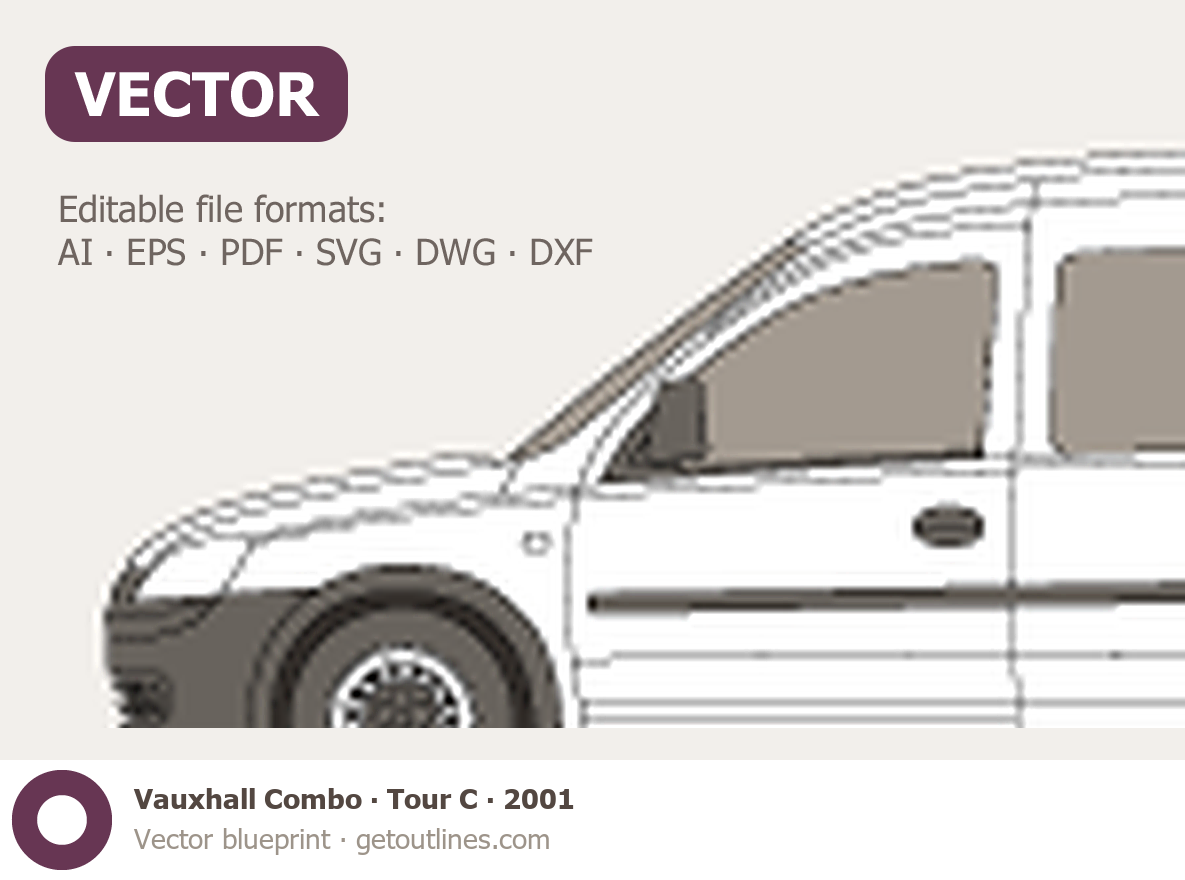 This 2001 Vauxhall Combo Tour C Wagon blueprint helps designers, wrap studios, and 3D artists simplify their workflow and save valuable time for creative work instead of routine tasks.