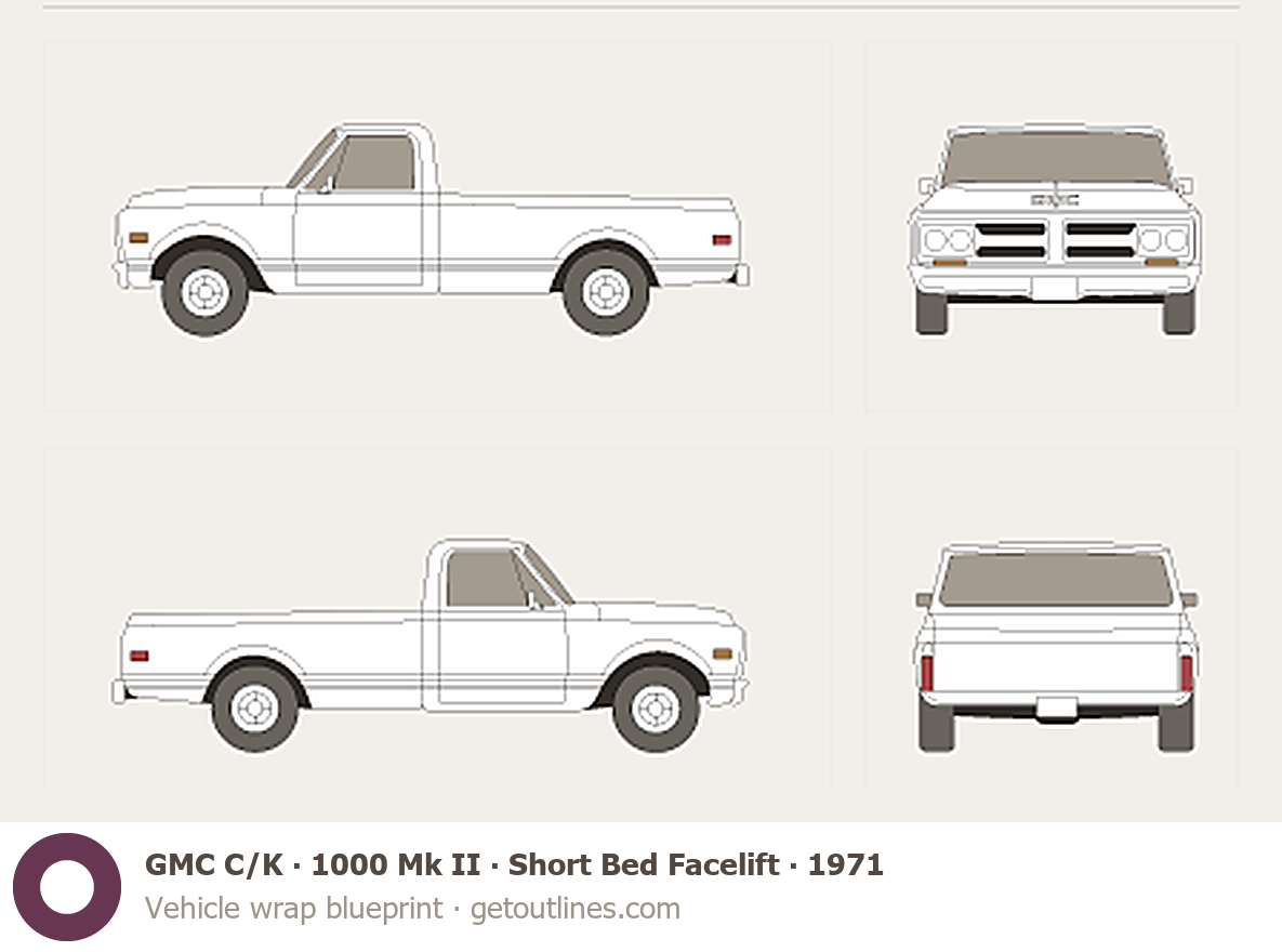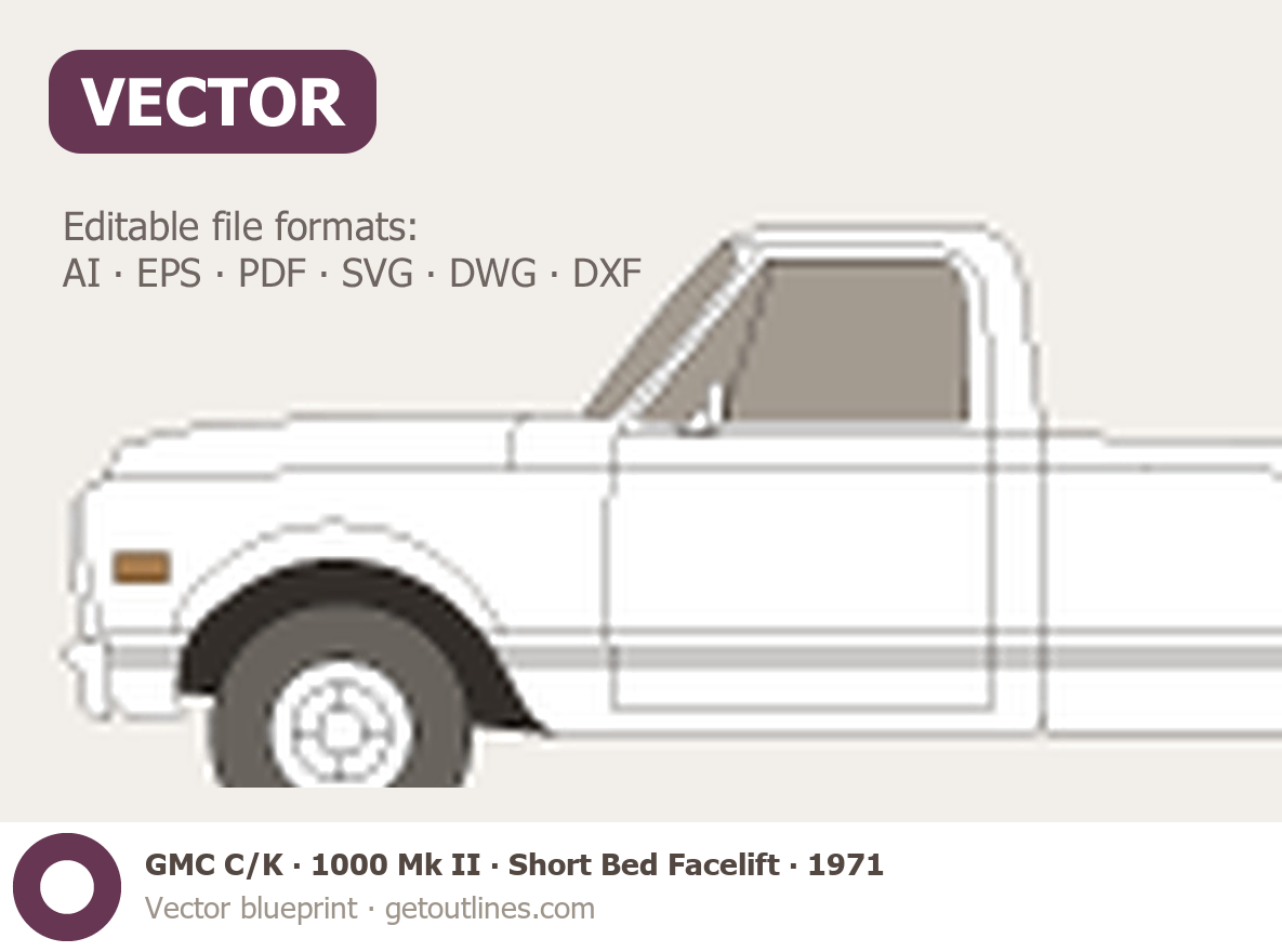 Buy this GMC C/K 1000 Mk II blueprint and line drawing in high-quality editable vector file formats. Best for 3D and car wrap design.