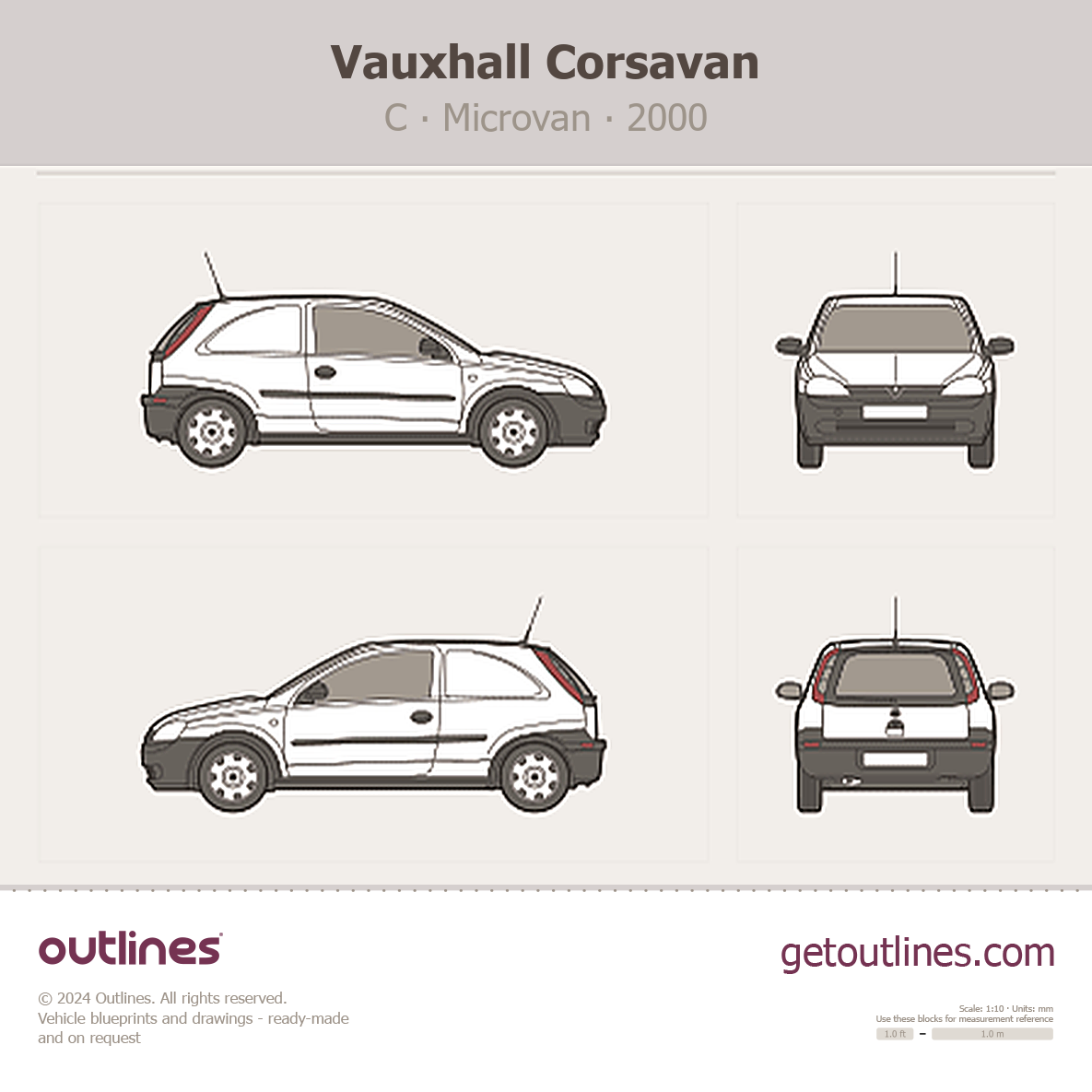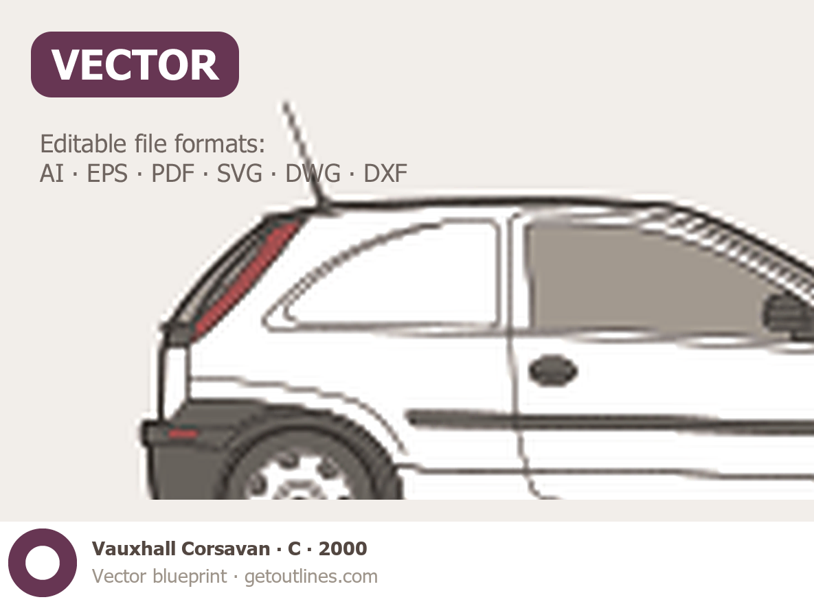 This 2000 Vauxhall Corsavan C Microvan blueprint helps designers, wrap studios, and 3D artists simplify their workflow and save valuable time for creative work instead of routine tasks.