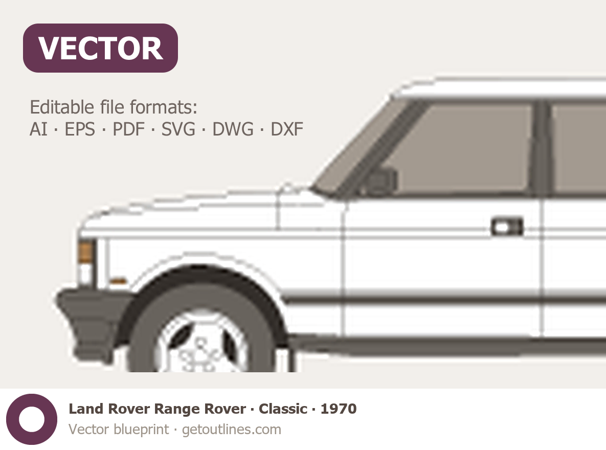 This 1970 Land Rover Range Rover Classic SUV blueprint helps designers, wrap studios, and 3D artists simplify their workflow and save valuable time for creative work instead of routine tasks.