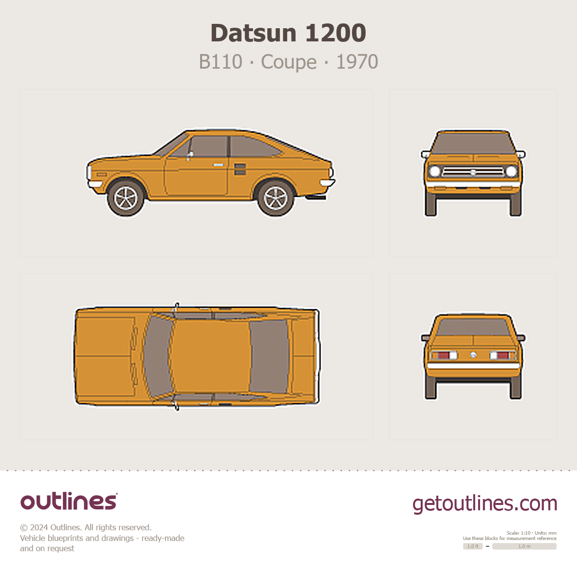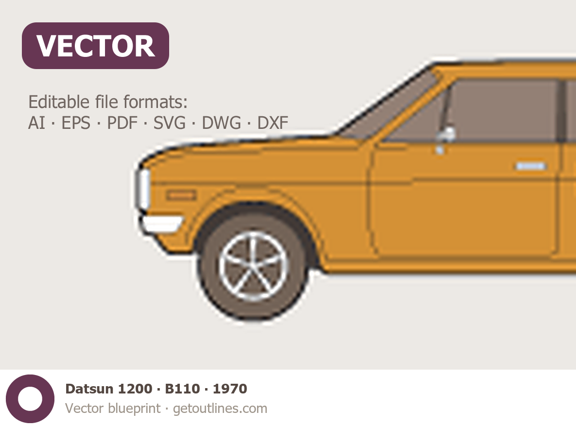 Buy this Datsun 1200 B110 blueprint and line drawing in high-quality editable vector file formats. Best for 3D and car wrap design.