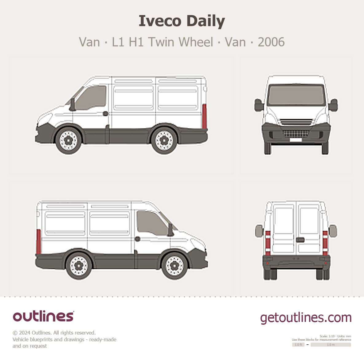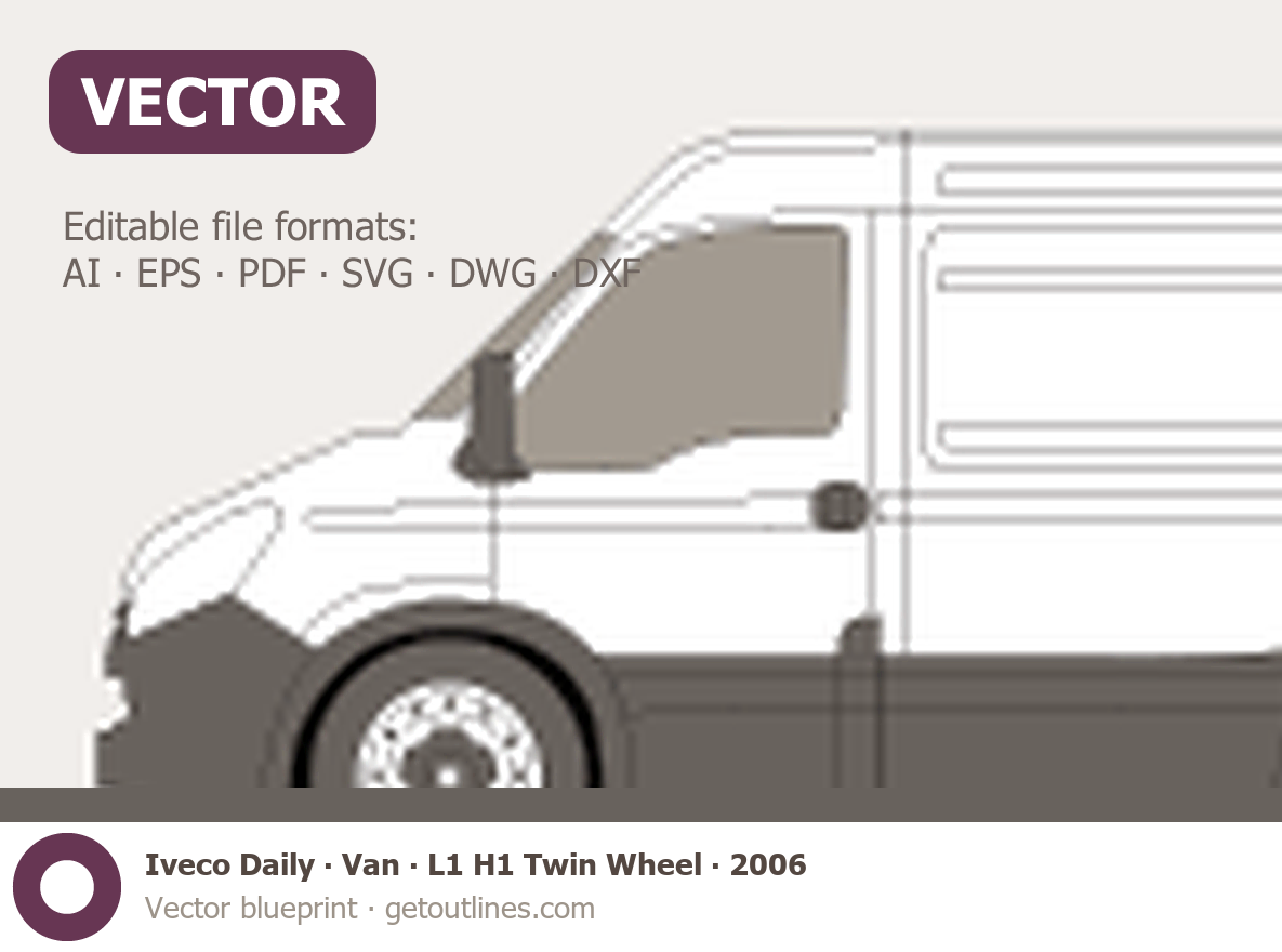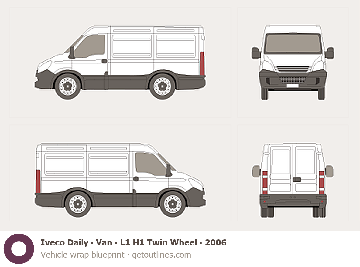 This 2006 Iveco Daily Van L1 H1 Twin Wheel Van blueprint helps designers, wrap studios, and 3D artists simplify their workflow and save valuable time for creative work instead of routine tasks.