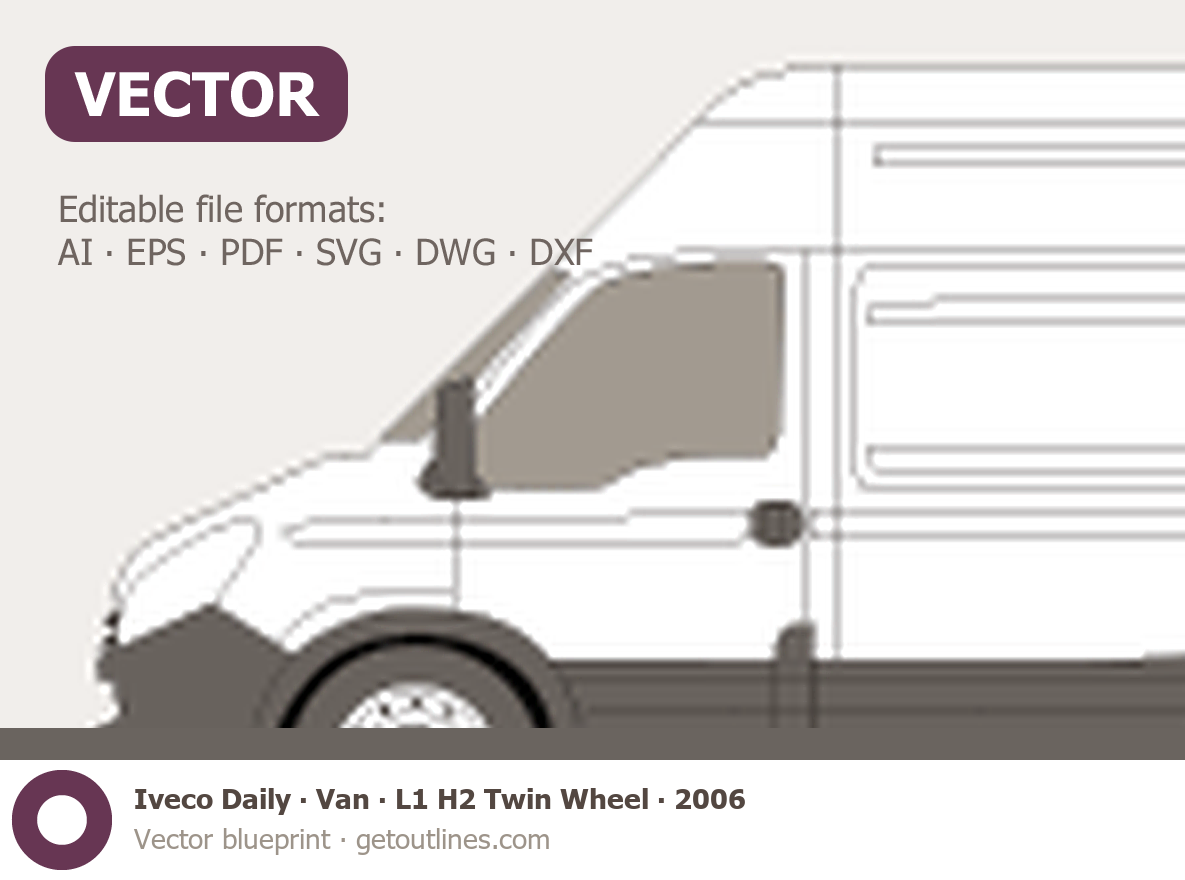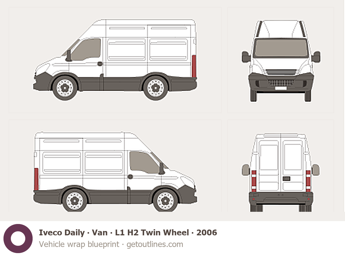 This 2006 Iveco Daily Van L1 H2 Twin Wheel Van blueprint helps designers, wrap studios, and 3D artists simplify their workflow and save valuable time for creative work instead of routine tasks.