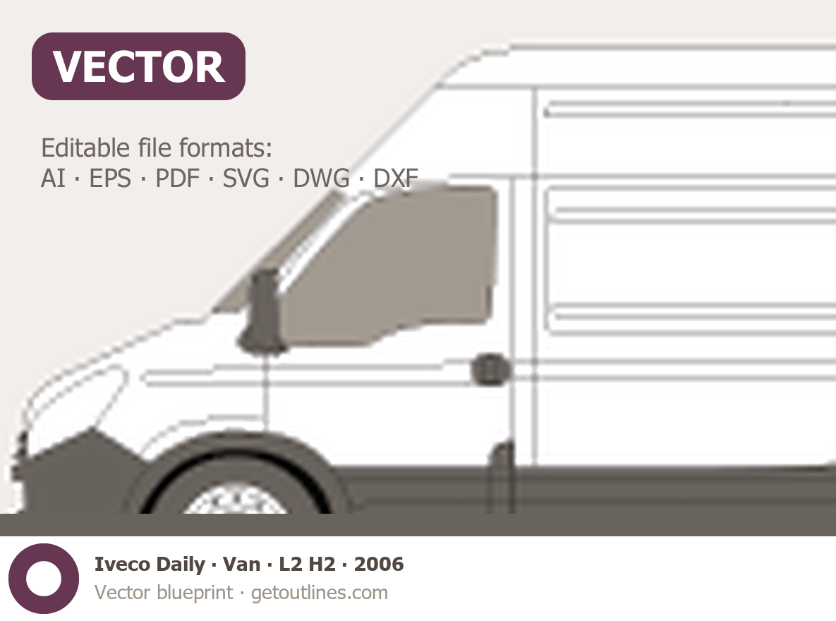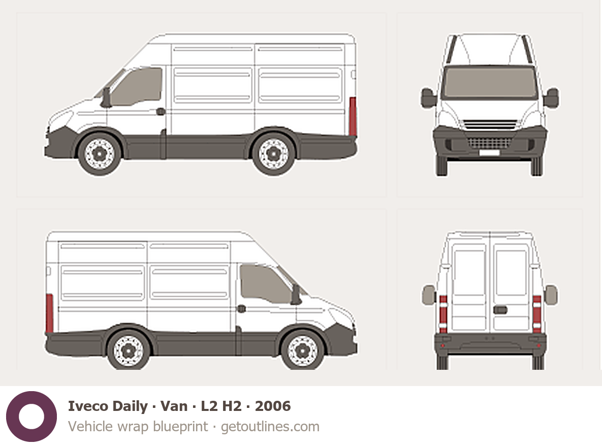 This 2006 Iveco Daily Van L2 H2 Van blueprint helps designers, wrap studios, and 3D artists simplify their workflow and save valuable time for creative work instead of routine tasks.