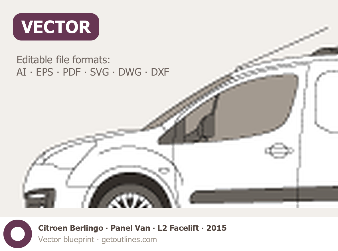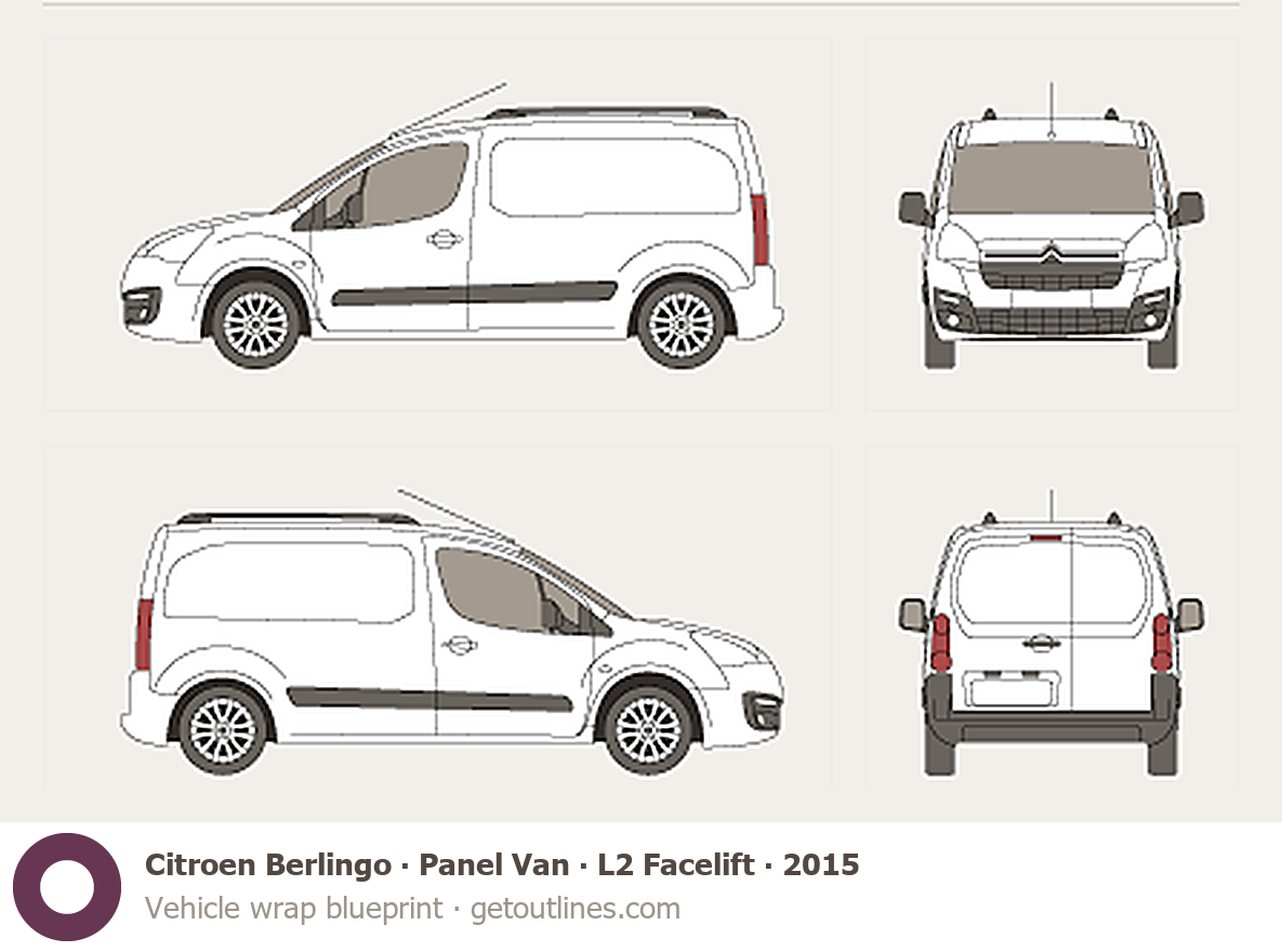 This 2015 Citroen Berlingo Panel Van L2 Facelift Van blueprint helps designers, wrap studios, and 3D artists simplify their workflow and save valuable time for creative work instead of routine tasks.
