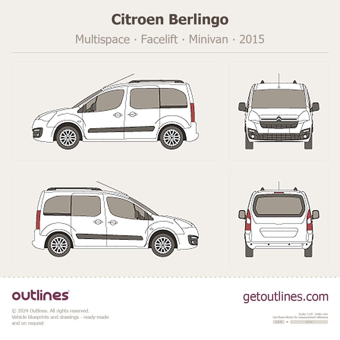 This is a blueprint of the Berlingo, produced by carmaker Citroen in 2015 - Present (2025, 2026). It features a Minivan body design and is classified as a Family vehicle.