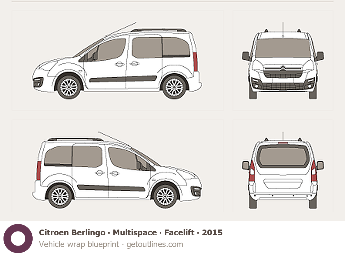 This 2015 Citroen Berlingo Multispace Facelift Minivan blueprint helps designers, wrap studios, and 3D artists simplify their workflow and save valuable time for creative work instead of routine tasks.