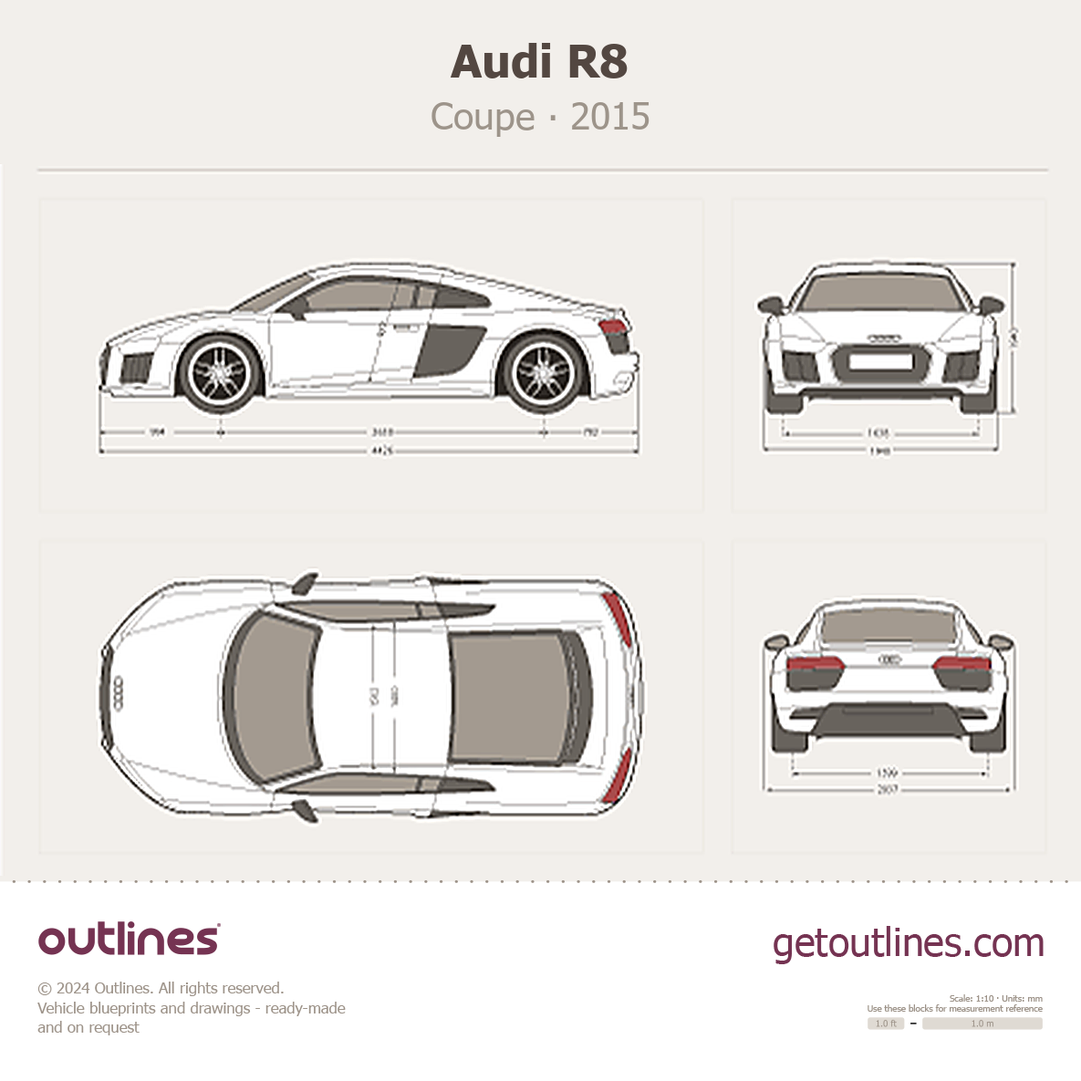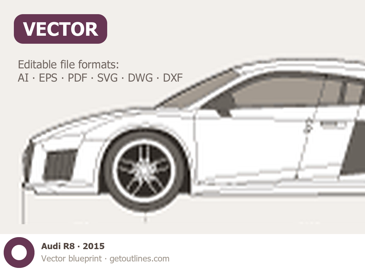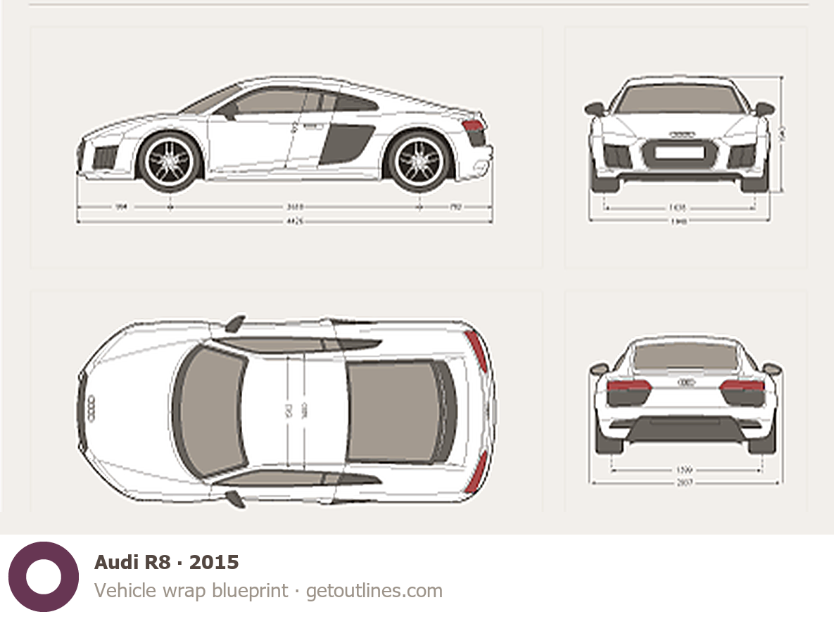This 2015 Audi R8 Coupe blueprint helps designers, wrap studios, and 3D artists simplify their workflow and save valuable time for creative work instead of routine tasks.