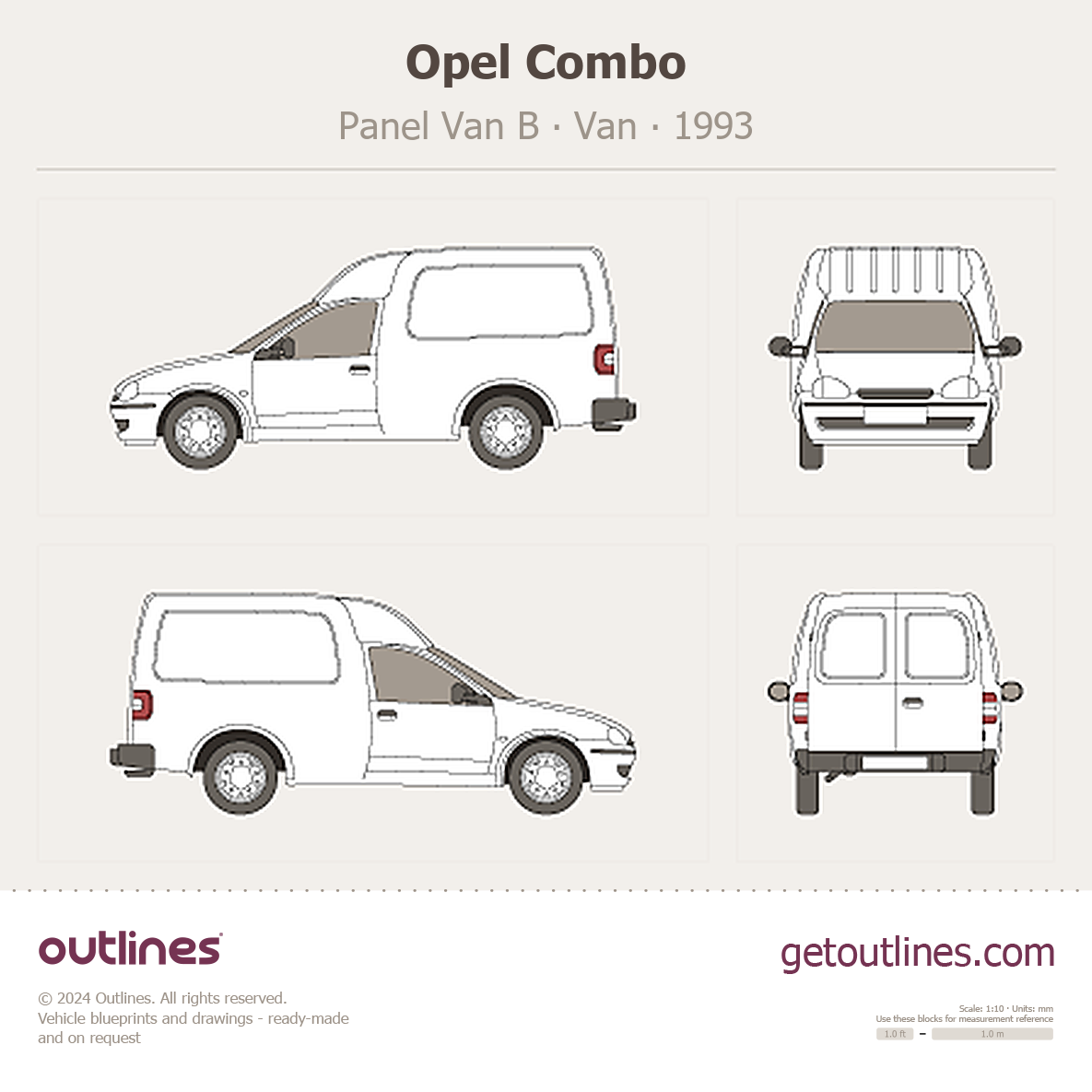 This 1993 Opel Combo Panel Van B Van blueprint helps designers, wrap studios, and 3D artists simplify their workflow and save valuable time for creative work instead of routine tasks.