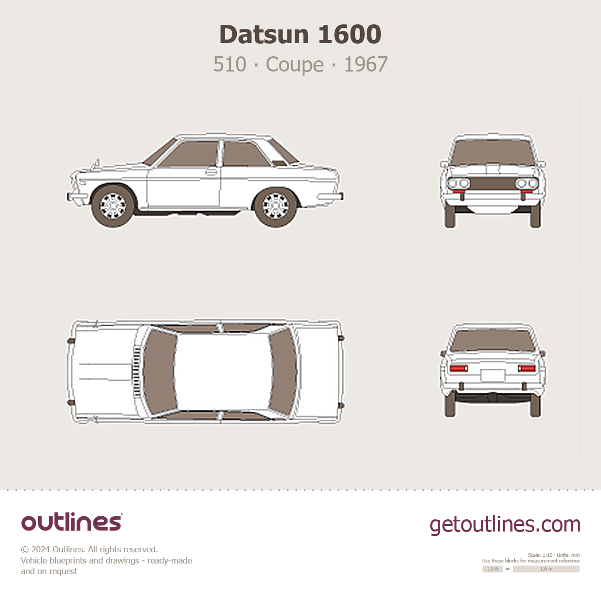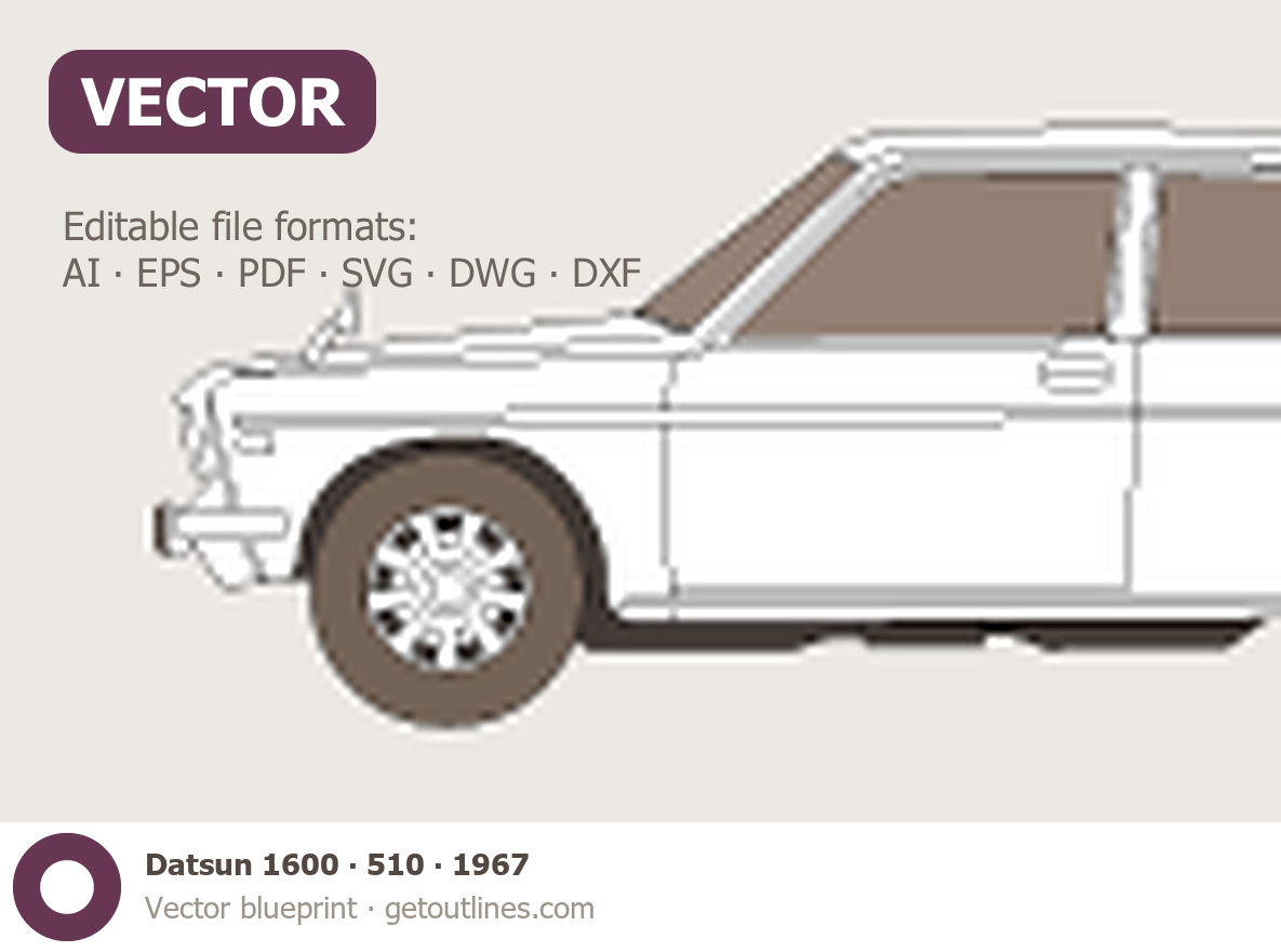 This 1967 Datsun 1600 510 Coupe blueprint helps designers, wrap studios, and 3D artists simplify their workflow and save valuable time for creative work instead of routine tasks.