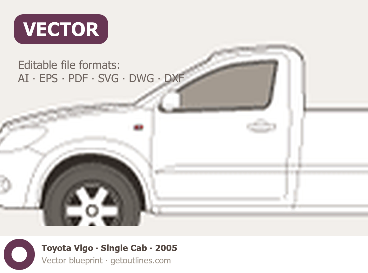 This 2005 Toyota Vigo Single Cab Pickup Truck blueprint helps designers, wrap studios, and 3D artists simplify their workflow and save valuable time for creative work instead of routine tasks.