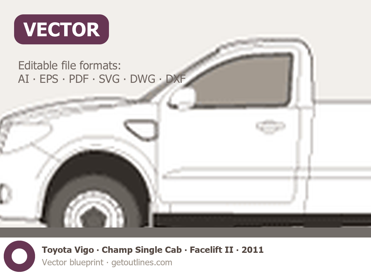 Buy this Toyota Vigo Champ Single Cab blueprint and line drawing in high-quality editable vector file formats. Best for 3D and car wrap design.