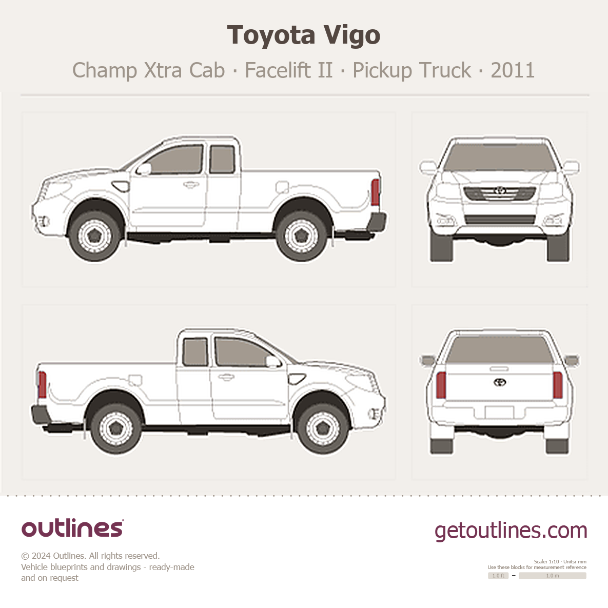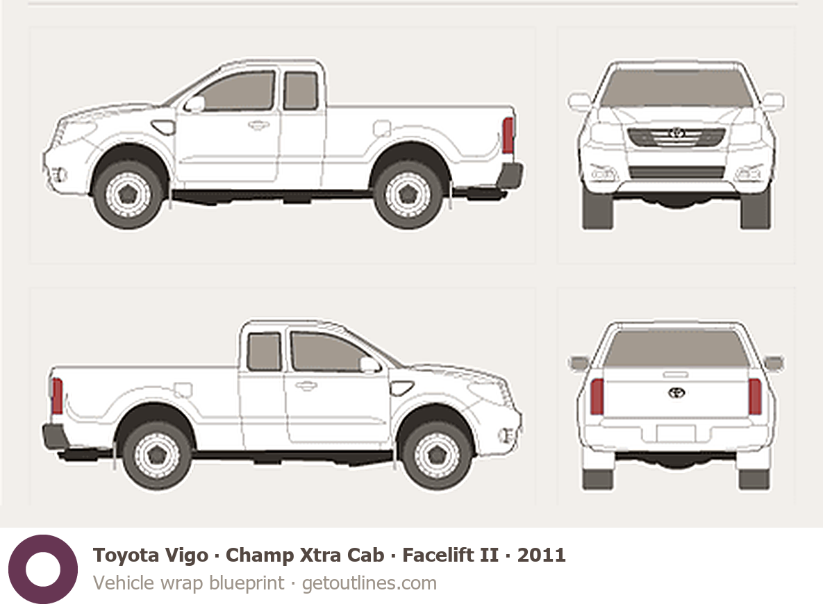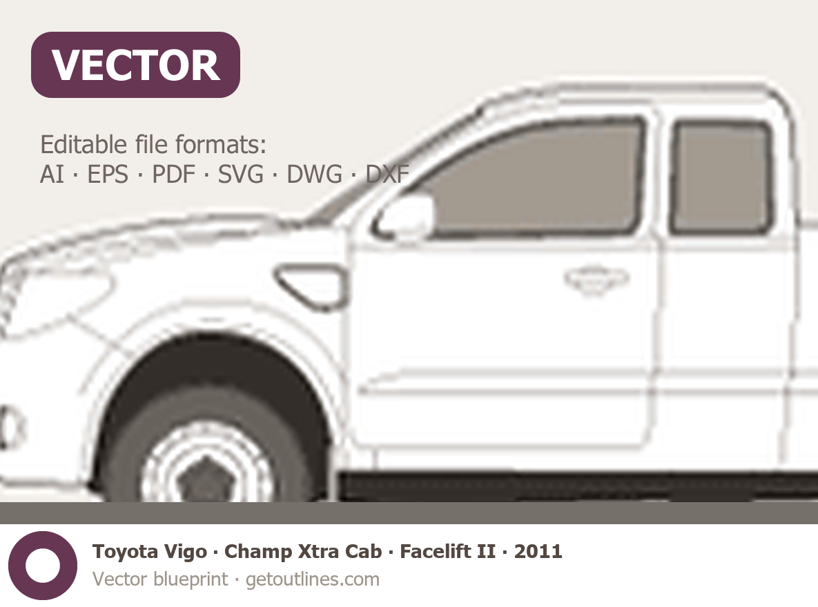 Buy this Toyota Vigo Champ Xtra Cab blueprint and line drawing in high-quality editable vector file formats. Best for 3D and car wrap design.