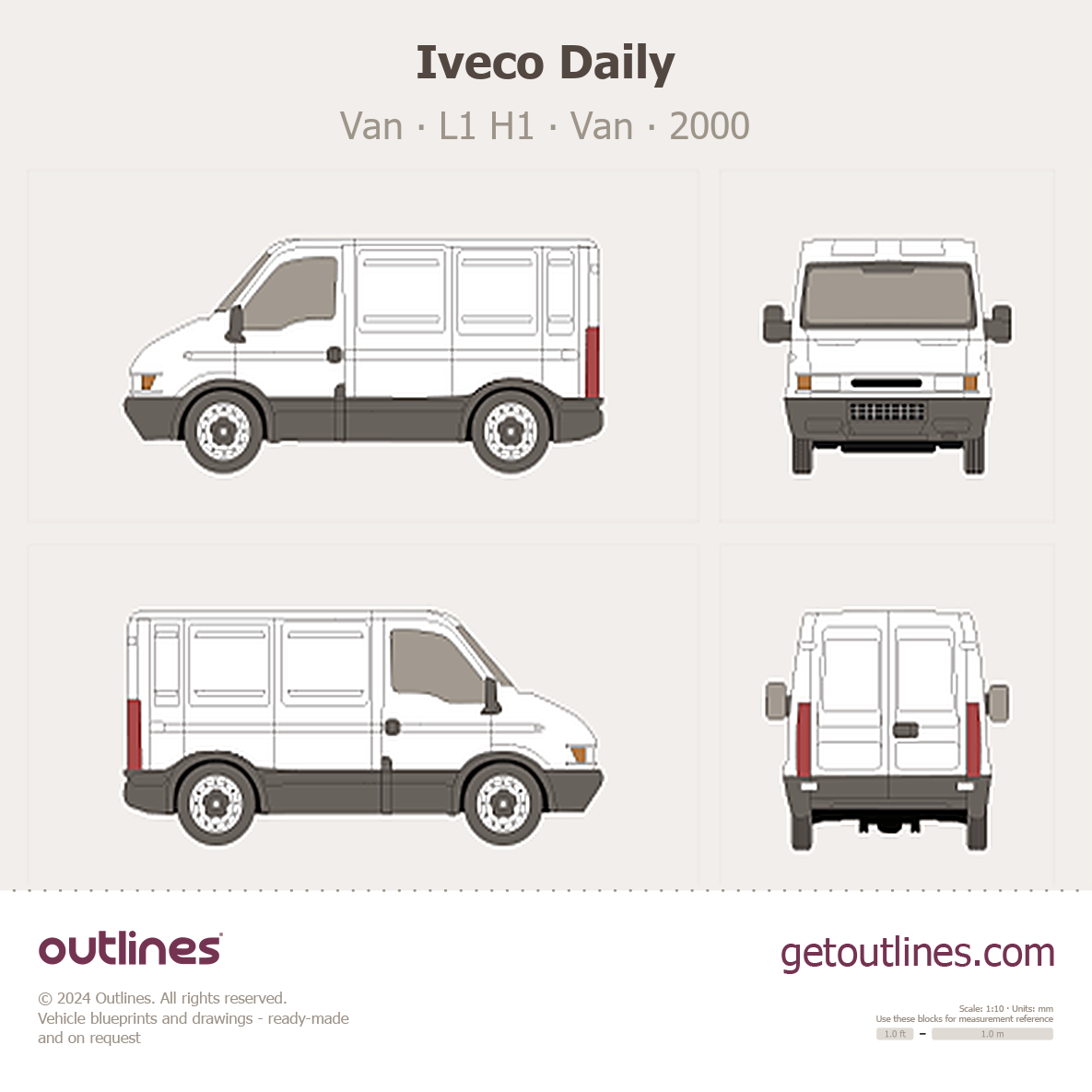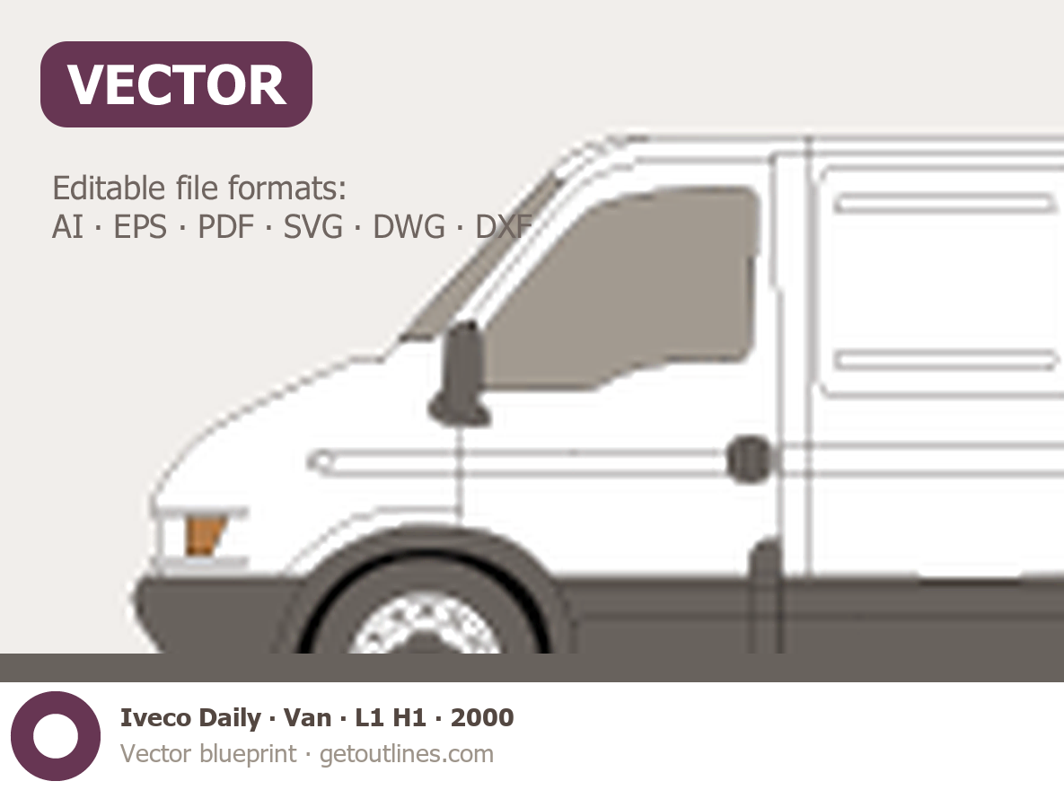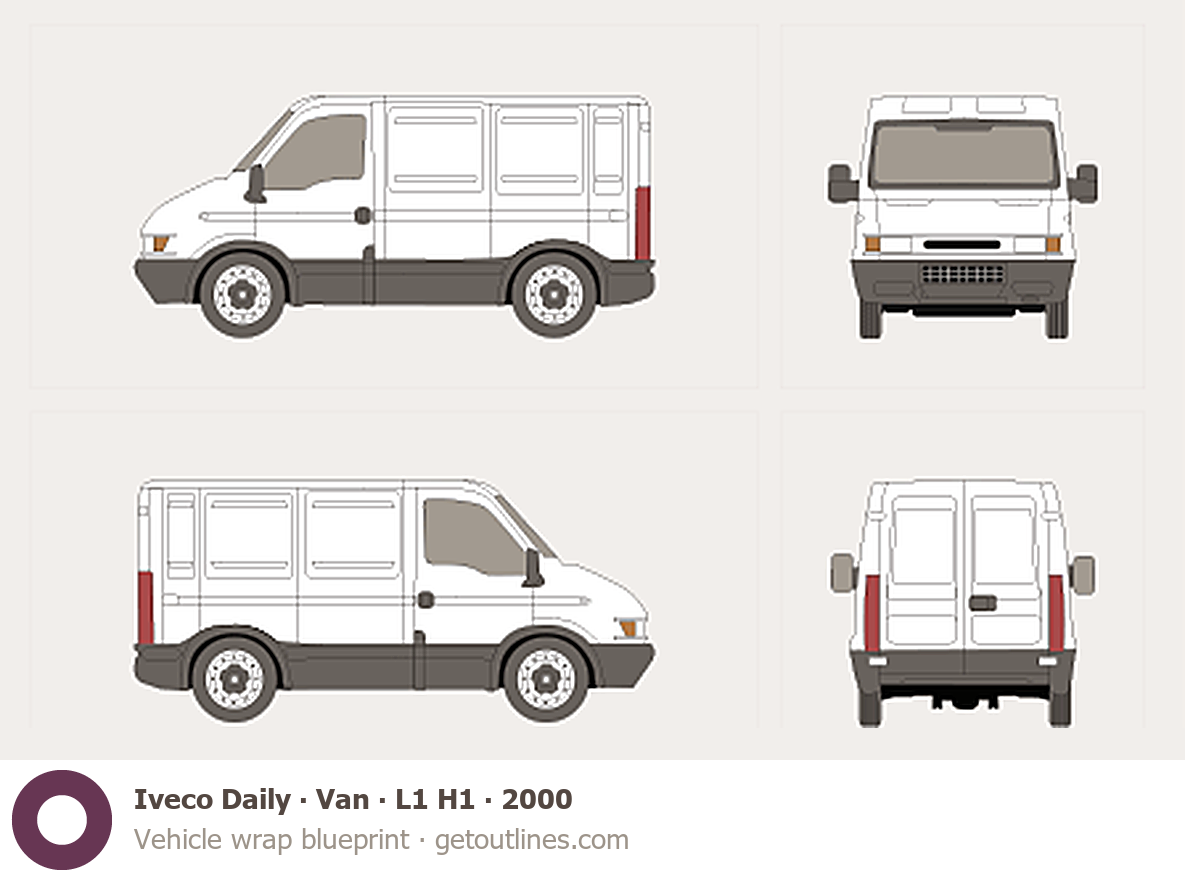 This 2000 Iveco Daily Van L1 H1 Van blueprint helps designers, wrap studios, and 3D artists simplify their workflow and save valuable time for creative work instead of routine tasks.
