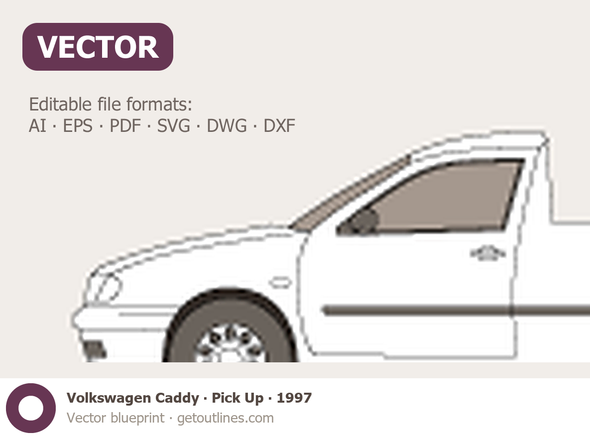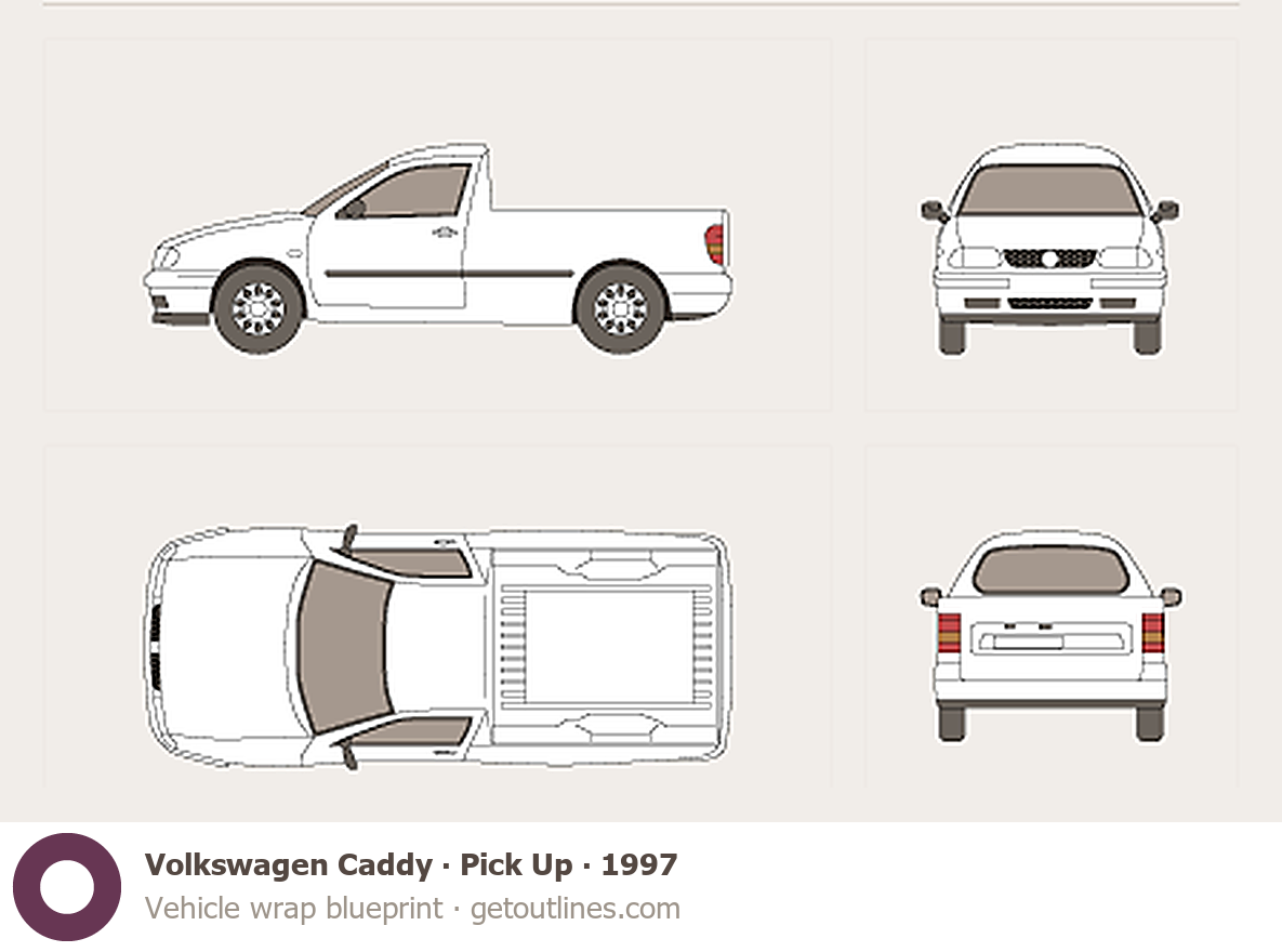 This 1997 Volkswagen Caddy Pick Up Pickup Truck blueprint helps designers, wrap studios, and 3D artists simplify their workflow and save valuable time for creative work instead of routine tasks.