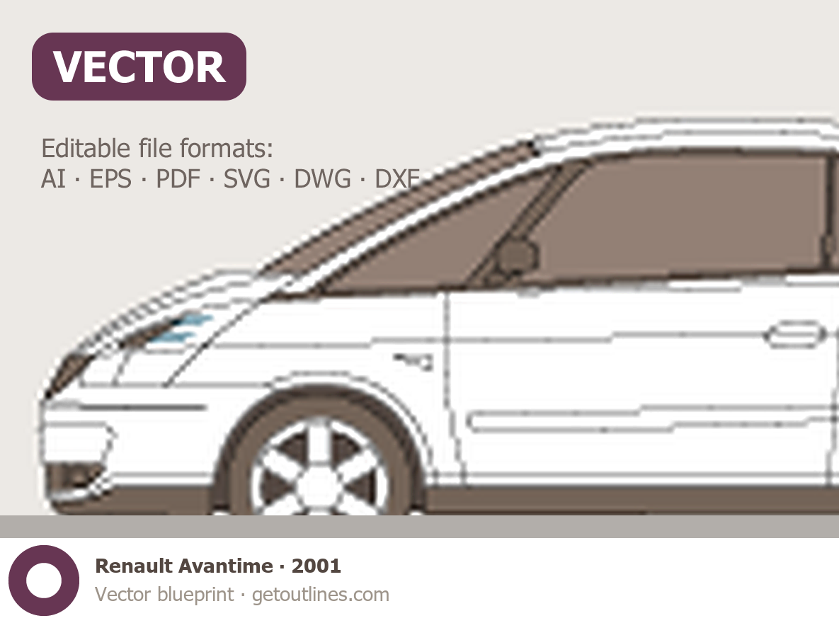Buy this Renault Avantime blueprint and line drawing in high-quality editable vector file formats. Best for 3D and car wrap design.