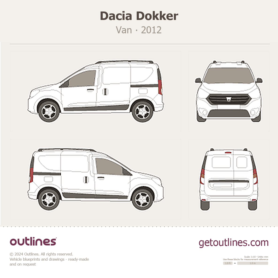This 2012 Dacia Dokker Van blueprint helps designers, wrap studios, and 3D artists simplify their workflow and save valuable time for creative work instead of routine tasks.