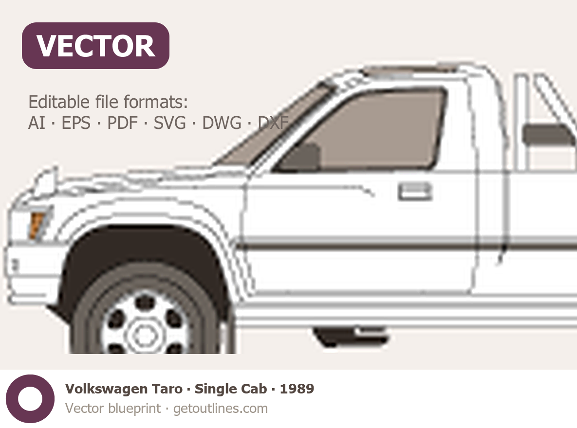 This 1989 Volkswagen Taro Single Cab Pickup Truck blueprint helps designers, wrap studios, and 3D artists simplify their workflow and save valuable time for creative work instead of routine tasks.