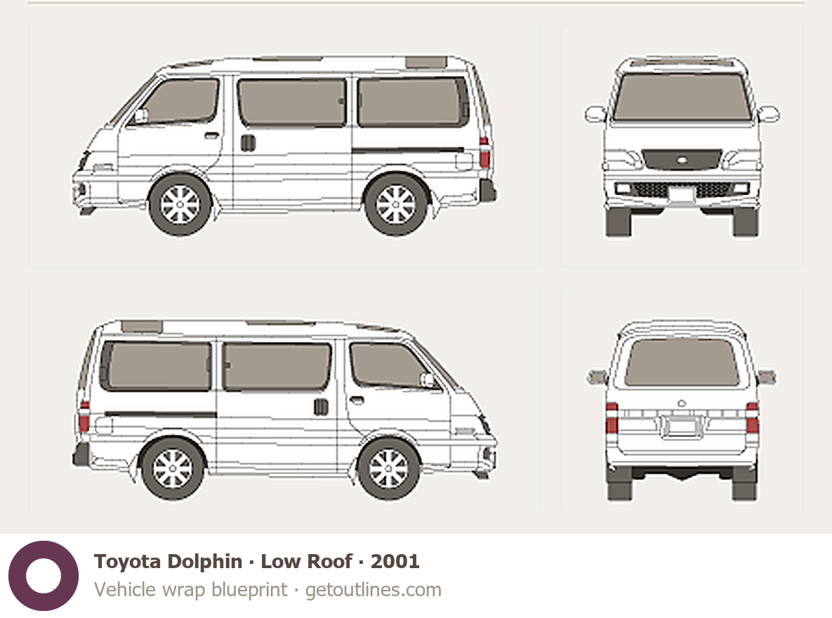 Buy this Toyota Dolphin blueprint and line drawing in high-quality editable vector file formats. Best for 3D and car wrap design.