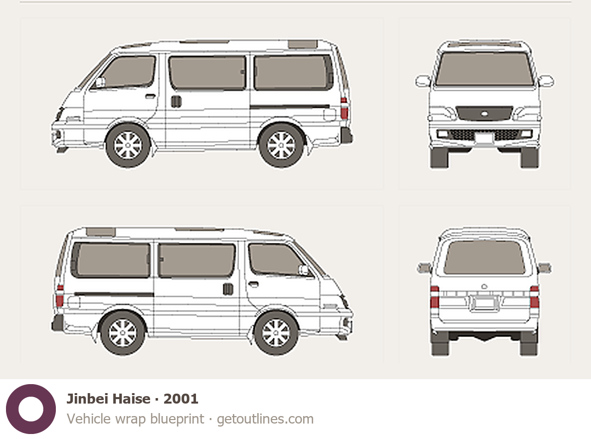 This 2001 Jinbei Haise Wagon blueprint helps designers, wrap studios, and 3D artists simplify their workflow and save valuable time for creative work instead of routine tasks.
