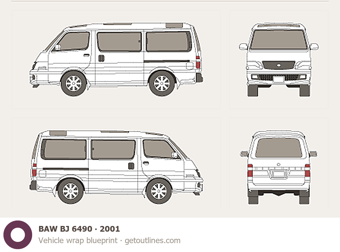 This 2001 BAW BJ 6490 Wagon blueprint helps designers, wrap studios, and 3D artists simplify their workflow and save valuable time for creative work instead of routine tasks.