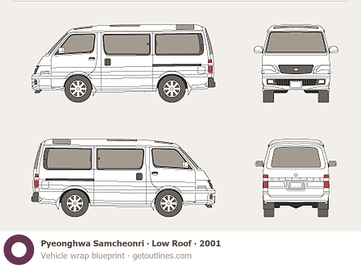 This 2001 Pyeonghwa Samcheonri Low Roof Wagon blueprint helps designers, wrap studios, and 3D artists simplify their workflow and save valuable time for creative work instead of routine tasks.