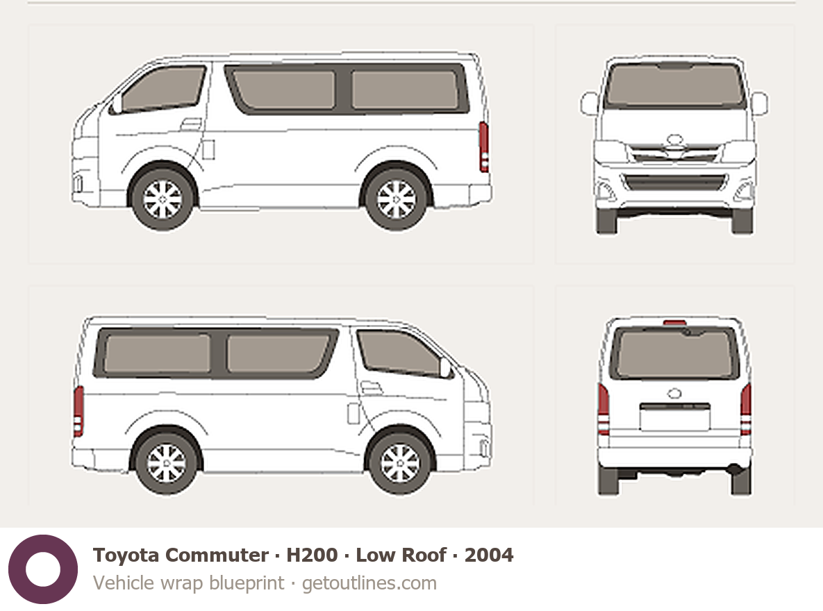 This 2004 Toyota Commuter H200 Low Roof Wagon blueprint helps designers, wrap studios, and 3D artists simplify their workflow and save valuable time for creative work instead of routine tasks.