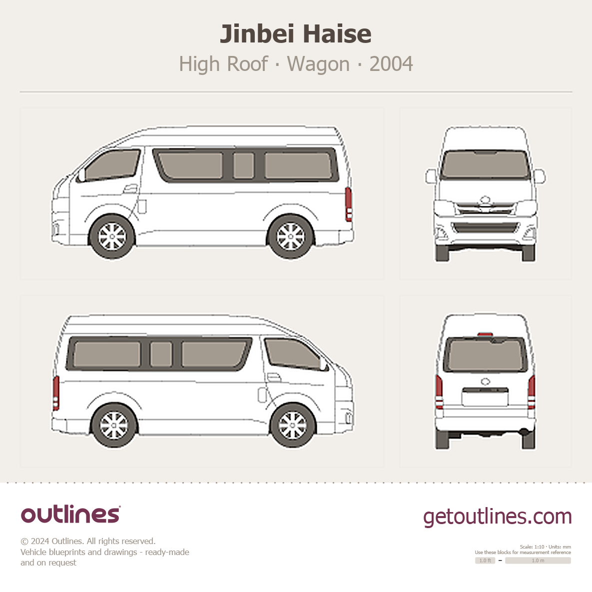 This 2004 Jinbei Haise High Roof Wagon blueprint helps designers, wrap studios, and 3D artists simplify their workflow and save valuable time for creative work instead of routine tasks.
