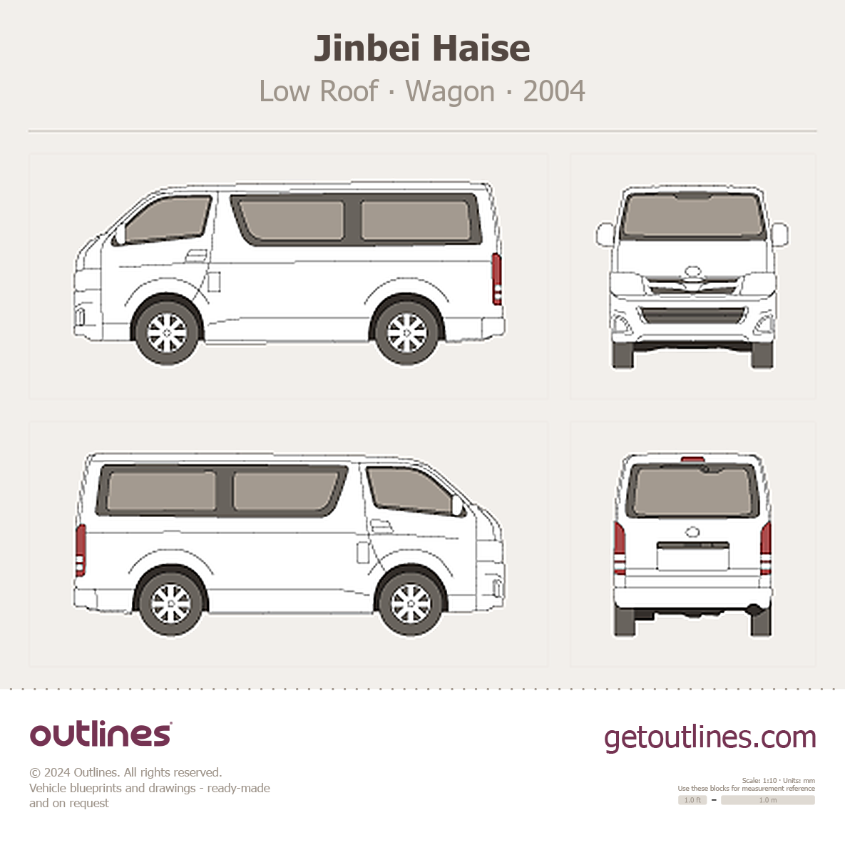 This is a blueprint of the Haise, produced by carmaker Jinbei in 2004 - Present (2025, 2026). It features a Wagon body design and is classified as a Commercial vehicle.