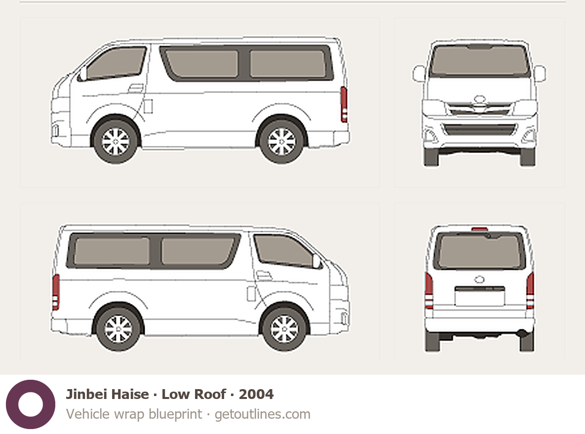 This 2004 Jinbei Haise Low Roof Wagon blueprint helps designers, wrap studios, and 3D artists simplify their workflow and save valuable time for creative work instead of routine tasks.